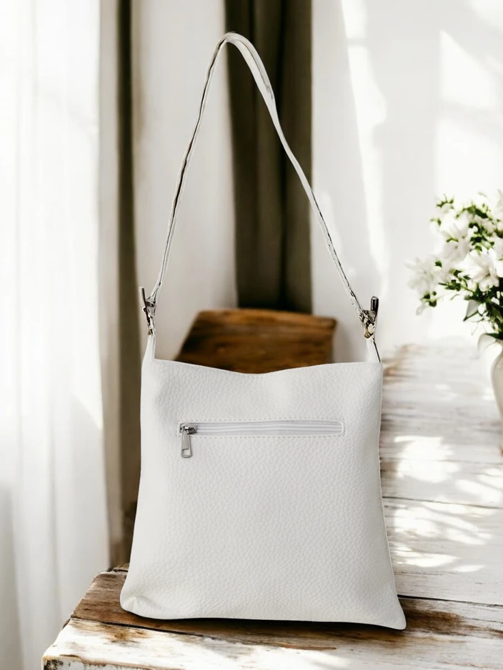 - Women's handbag with a zipper, made of eco leather. The model has 1 compartment, 3 internal pockets, and 2 external pockets. Additionally, it has an adjustable strap. Perfect for everyday use!