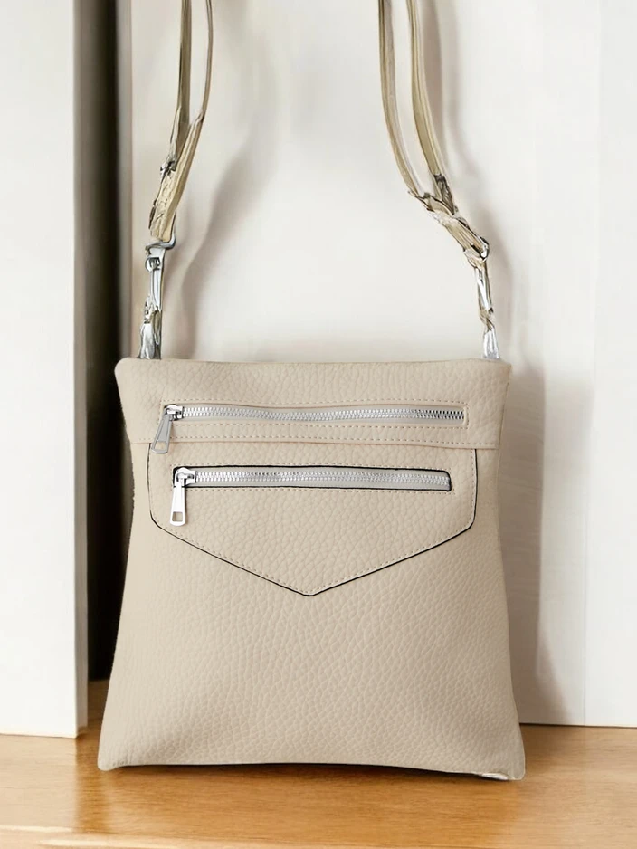 - Women's handbag with a zipper, made of eco leather. The model has 1 compartment, 3 internal pockets, and 2 external pockets. Additionally, it has an adjustable strap. Perfect for everyday use!