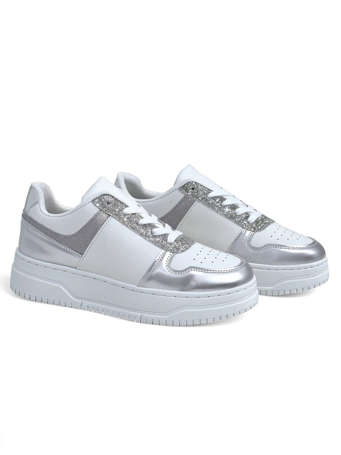 Odkryj piękno eleganckich złotych sneakersów od marki Royalfashion. Wykonane z wysokiej jakości skóry ekologicznej, zapewniają wygodę i trwałość. Nasze buty charakteryzują się płaskim obcasem o wysokości 3 cm, co sprawia, że są idealne do noszenia na co dzień. Dzięki wkładce z tkaniny, Twoje stopy będą czuły się komfortowo przez cały dzień. Te sneakersy świetnie sprawdzą się zarówno wiosną, jak i jesienią, a ich złoty kolor dodaje blasku każdemu strojowi. Możesz je z łatwością dopasować do różnych stylizacji. Oto kilka pomysłów na outfity: 1. : Połącz je z dżinsami i białym t-shirtem dla swobodnego stylu. 2. : Stylizuj je z małą czarną sukienką, aby uzyskać szykowny wygląd. 3. : Zestaw je ze sportowym kompletem, aby uzyskać modny look. Aby utrzymać sneakersy w doskonałym stanie, zalecamy regularne czyszczenie ich wilgotną szmatką oraz unikanie kontaktu z wodą. Dzięki temu Twoje buty będą prezentować się jak nowe przez długi czas. Aktualne trendy modowe wskazują, że złote akcenty powracają na wybieg, a nasz model doskonale wpisuje się w te tendencje, łącząc komfort z elegancją. Nie przegap okazji, aby dodać ten wyjątkowy model do swojej kolekcji!