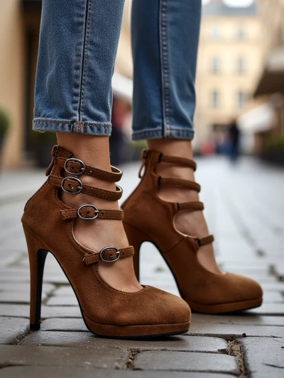 - Elegant women's block-heeled pumps made of suede eco-leather. The inside of the shoe is lined with eco-leather, and the toe is rounded. Class and fashion elegance!