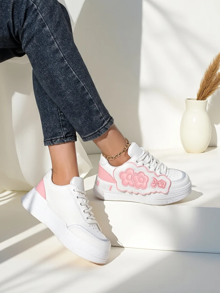 - Women's sneakers made of eco-leather with a fabric insole on a platform, combining comfort with stylish fashion. Perfect for everyday wear, they provide lightness and comfort, while the subtle design adds elegance to any outfit.