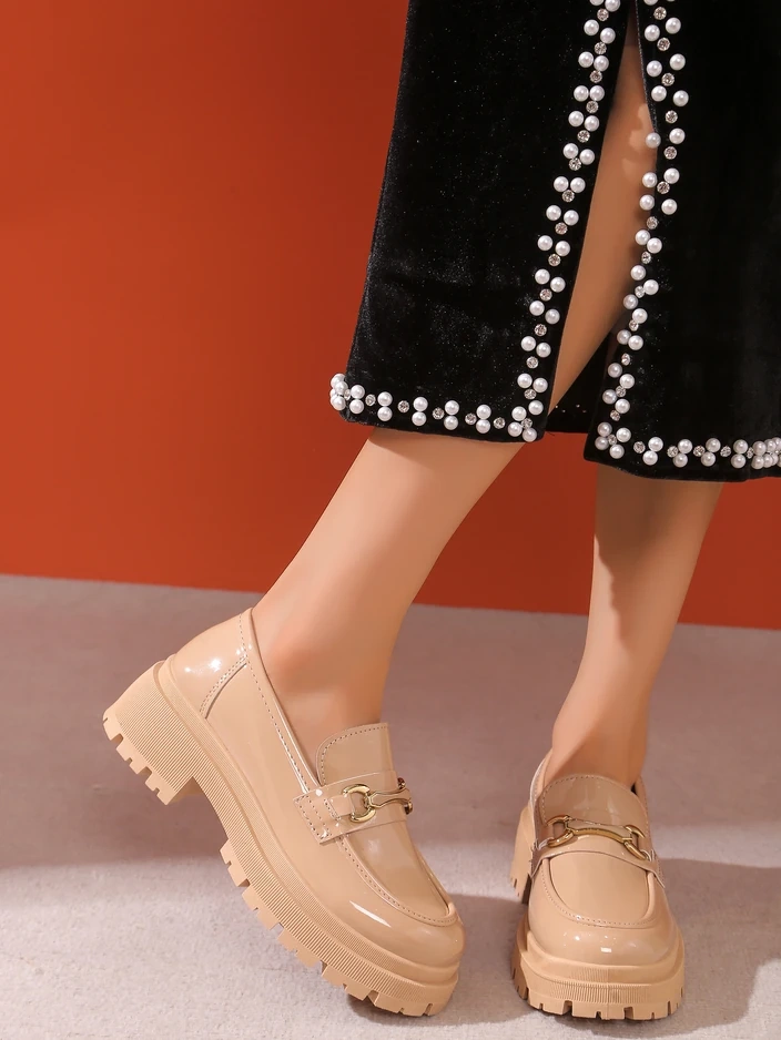 • Beautiful women's moccasins on a thicker sole. The model is casual style and is made of patent eco-leather and an eco-leather insole. The upper features a non-removable decoration. The toe is rounded. An ideal base for many everyday looks!