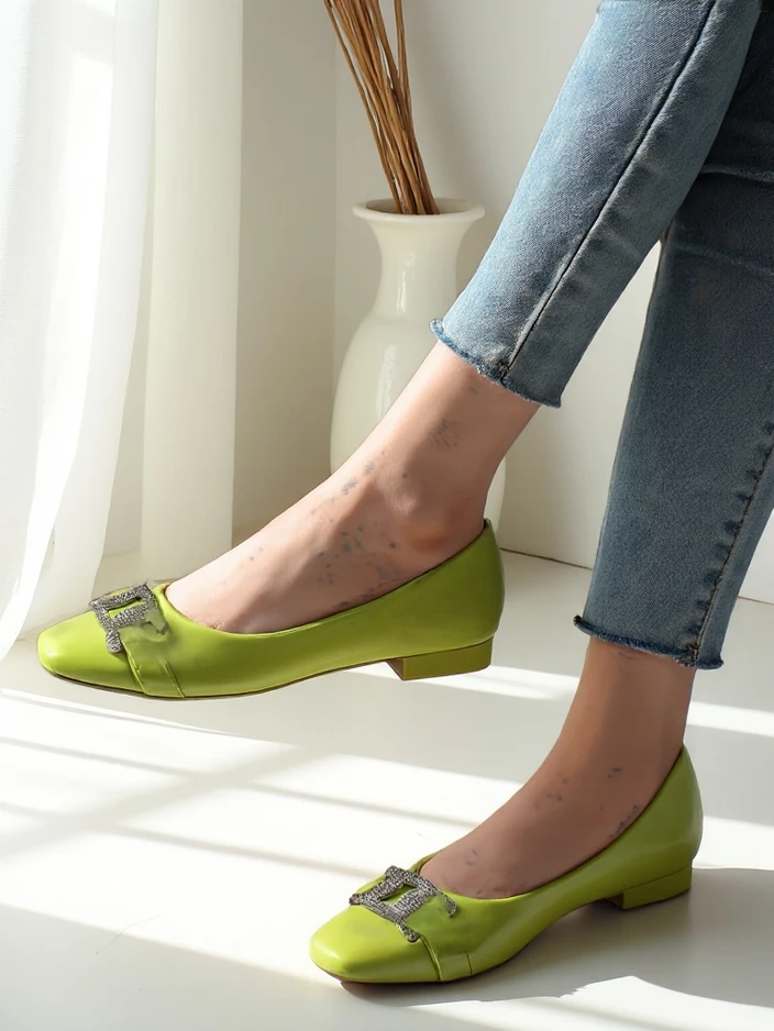 - Unique ballerinas made of eco-leather with a square toe. The upper is adorned with a delicate bow. A soft eco-leather insole provides comfort. They are perfect for elegant and fashionable styles!