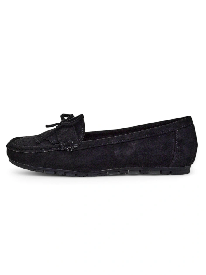 - Beautiful women's loafers with a flat sole. The model is casual in style and is made of eco suede and eco leather insole. The toe is rounded. An ideal base for many everyday looks!