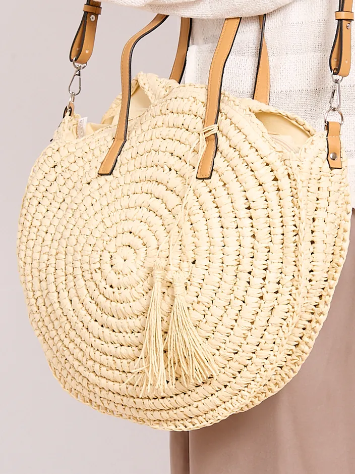 - Large round wicker bag. Very spacious, lined inside with fabric. The bag fastens with a zipper.