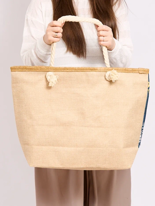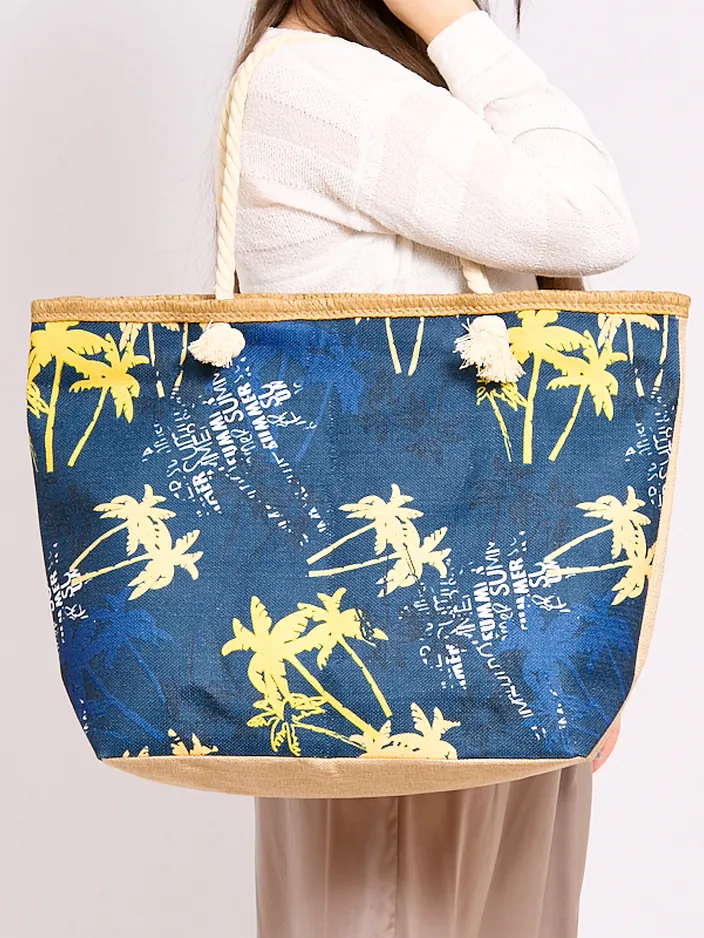 - Stylish fabric bag finished with a print. The bag has longer handles, zip closure, and includes 1 pocket inside. It will be great for the beach!