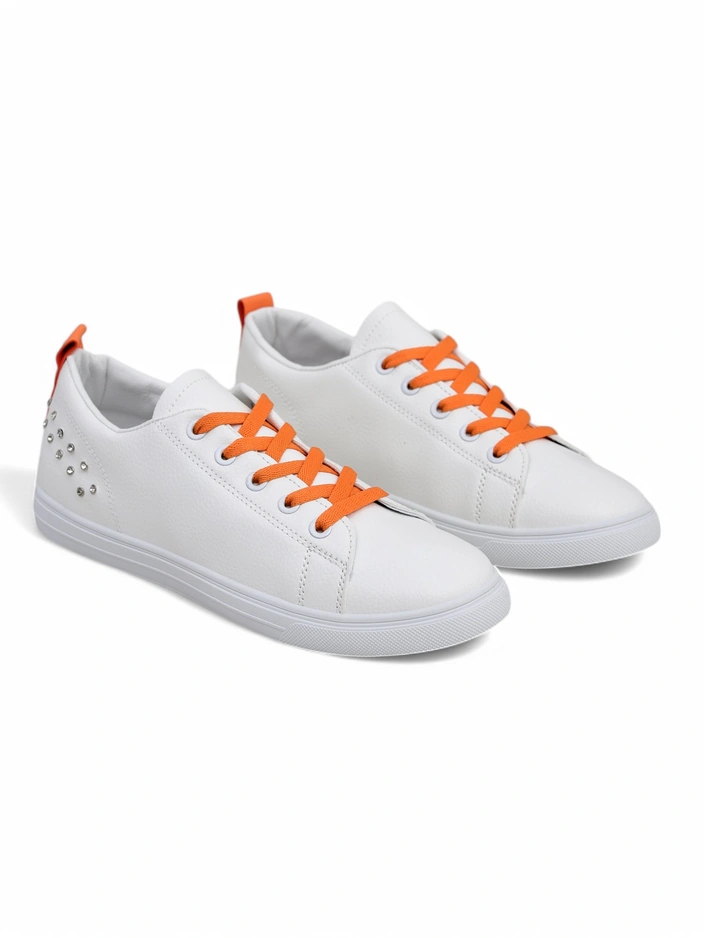 - Original women's sneakers with a flat sole - the perfect combination of style and comfort. The shoes are made of eco-leather. Laced model with a fabric insole. Perfect for active individuals!