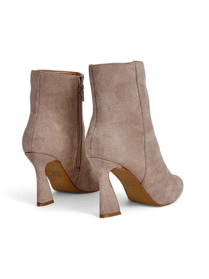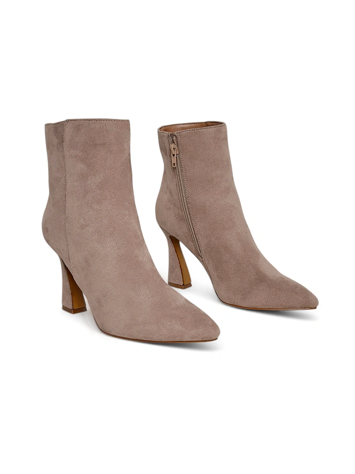 - Stylish women's eco-suede ankle boots - the perfect solution for cooler days. The model features a zipper closure and has an eco-leather insole. The model has a stiletto heel and a pointed toe.