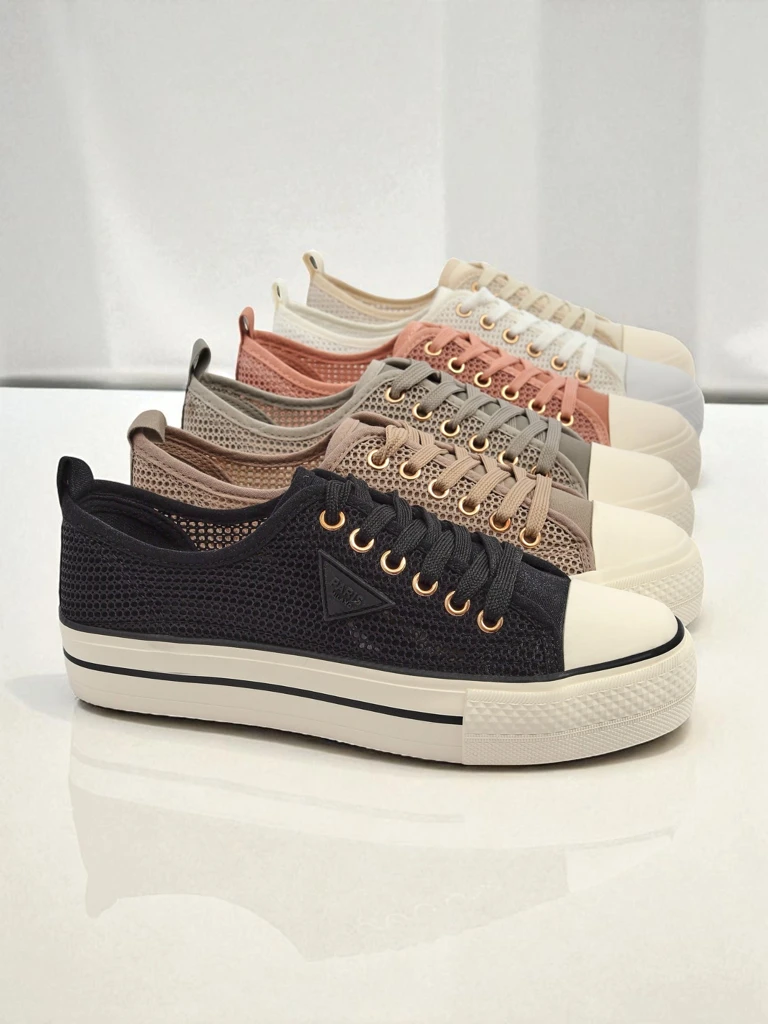 - Classic openwork sneakers with a fabric lining. Very comfortable thanks to the rubber sole. These shoes match many everyday styles!