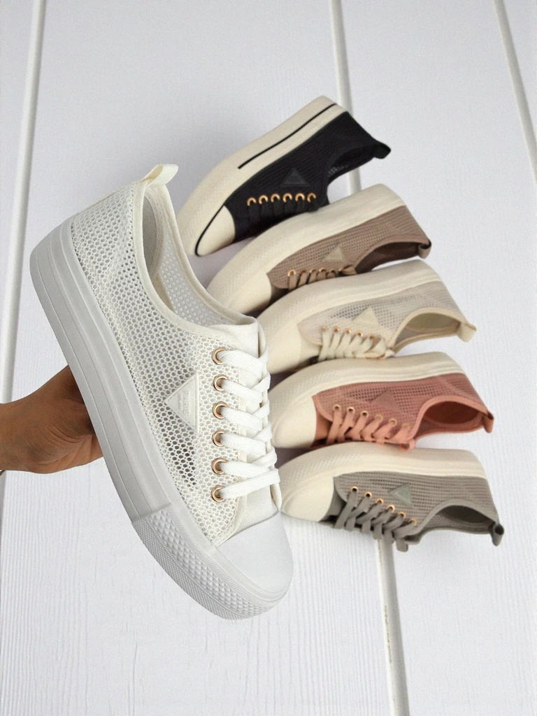 Discover the unique Melania Nero sneakers, which perfectly fit into the current trends of urban fashion. These are women's flat-heeled shoes with a 3 cm sole height, created especially for modern women who value comfort, breathability and universal style. Material and technology: The upper of these sneakers is made of high-quality mesh fabric, which ensures optimal ventilation of the foot, even during the warmest summer days. The textile insole is delicate and soft, which guarantees all-day wearing comfort. The shoes are made using modern technologies that strengthen the material, which ensures their durability even with frequent use. Benefits and sensations: The lightweight construction and flexible sole allow for a natural, free step and are perfect for both everyday activities and longer walks. The Melania Nero model perfectly combines a sporty style with a touch of casual elegance. Styling ideas: 1. Pair Melania Nero sneakers with light boyfriend jeans, a loose T-shirt and an oversized denim jacket - a perfect everyday look for school or university. 2. Create a fashionable summer outfit: wear high-waisted shorts, a white tank top and a light shirt draped over your shoulders. Add black sneakers - you'll gain comfort and style for going out with friends. 3. For cooler autumn days, combine them with black leggings, a long sweater and a light quilted vest. The unique contrast will make the whole set urban and feminine. Care and cleaning: To keep your Melania Nero sneakers looking beautiful for as long as possible, it is recommended to clean them regularly with a slightly damp cloth. For larger dirt, you can use mild fabric cleaners. Avoid washing in the washing machine and drying in the sun - this will preserve the color and shape. Store in a well-ventilated place. Trends: The simple design and mesh fabric fit into the fashion for comfortable, breathable sneakers that reign on the streets of the world's largest cities. Black sneakers on a slightly raised sole are one of the most frequently chosen styles this season - they go with almost everything and allow you to express your personal style.