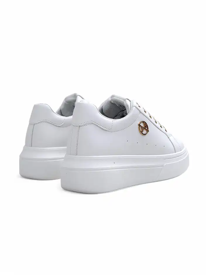 Odkryj sneakersy Erato Nero – wyjątkowe obuwie damskie na platformie, idealne na wiosnę i dla każdej kobiety ceniącej wygodę oraz styl. Wykonane z wysokogatunkowej skóry ekologicznej, połączonej z tkaninową, oddychającą wkładką, gwarantują komfort przez cały dzień. Skóra ekologiczna to nowoczesny materiał, który imituje naturalną skórę przy jednoczesnym szacunku dla zwierząt. Proces produkcji materiału spełnia rygorystyczne normy bezpieczeństwa i ekologii, co potwierdzają międzynarodowe certyfikaty branżowe (np. OEKO-TEX, jeśli dostępne).Buty Erato Nero wyróżniają się klasycznym, czarnym kolorem, złotymi detalami przy sznurowadłach oraz logotypem, które dodają elegancji każdej stylizacji. Platforma o wysokości 5 cm wysmukla sylwetkę, zapewniając stabilność i wygodę dzięki odpowiedniemu wyprofilowaniu podeszwy oraz amortyzującemu wnętrzu. Nowy stan obuwia gwarantuje świeżość oraz najwyższą jakość wykonania.Korzyści z noszenia sneakersów Erato Nero to nie tylko wygoda, ale także uniwersalność – świetnie sprawdzą się zarówno w codziennych, jak i bardziej eleganckich zestawieniach. Delikatna tkanina wkładki chroni stopę przed otarciami, a lekkość konstrukcji zapewnia komfort podczas dłuższych spacerów.3 pomysły na stylizację: 1. Casualowy look: zestaw z jeansami, białym t-shirtem i ramoneską – klasyka na miejski spacer.2. Streetwear: połącz z szerokimi spodniami cargo oraz krótkim topem – modny, młodzieżowy outfit.3. Elegancja na luzie: sneakersy z czarną sukienką midi i oversize’ową marynarką – styl do biura lub spotkanie z przyjaciółmi.Pielęgnacja: Skórę ekologiczną czyść wilgotną, miękką ściereczką lub specjalnymi preparatami przeznaczonymi do tego typu materiału. Unikaj długotrwałego kontaktu z wodą oraz bezpośredniego działania promieni słonecznych, aby nie dopuścić do odbarwień. Przechowuj buty w przewiewnym miejscu, najlepiej w oryginalnym pudełku lub na półce.Trendy: Sneakersy na wysokiej platformie to obecnie jeden z najsilniejszych trendów w modzie ulicznej. Dzięki uniwersalnej kolorystyce i nowoczesnej linii Erato Nero doskonale wpisują się w aktualny klimat modowy, pozwalając na swobodne miksowanie ich w wielu stylizacjach wiosennych.