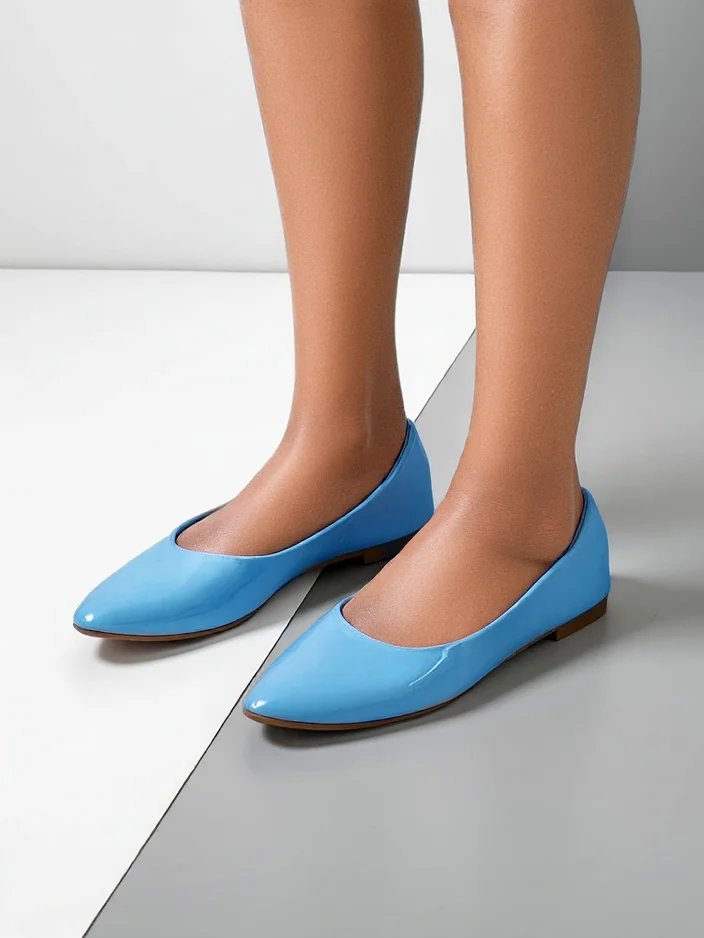- Unique ballerinas made of patent eco-leather with a pointed toe. The soft eco-leather insole provides comfort. They will perfectly suit elegant and fashionable outfits!