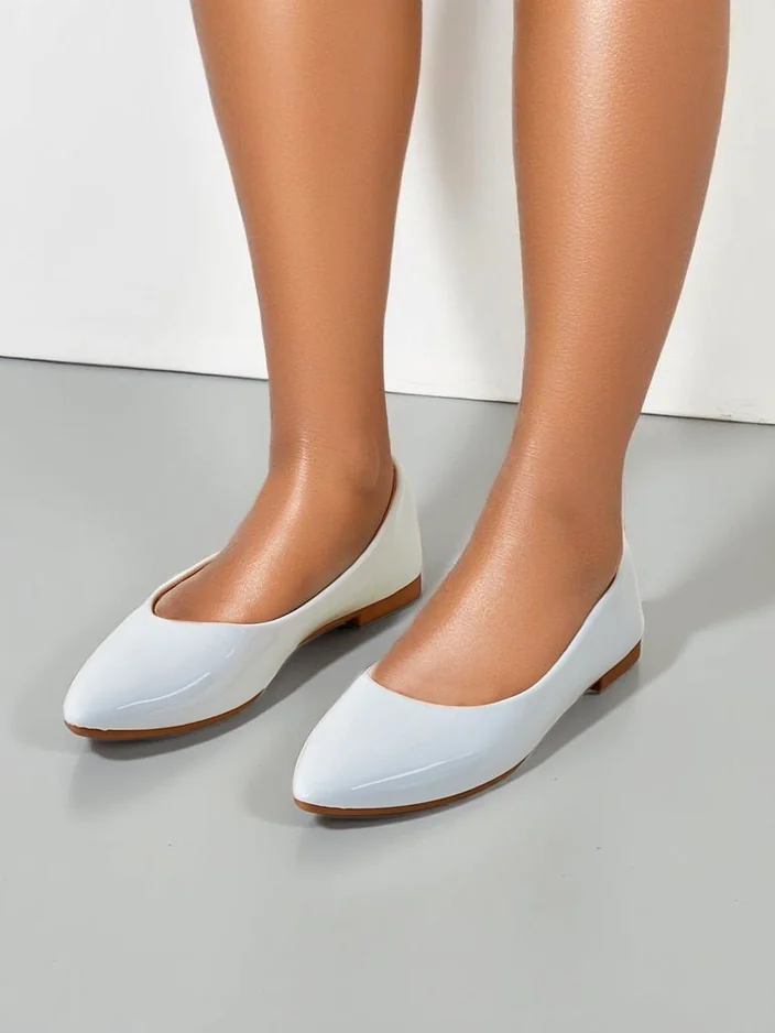 - Unique ballerinas made of patent eco-leather with a pointed toe. The soft eco-leather insole provides comfort. They will perfectly suit elegant and fashionable outfits!