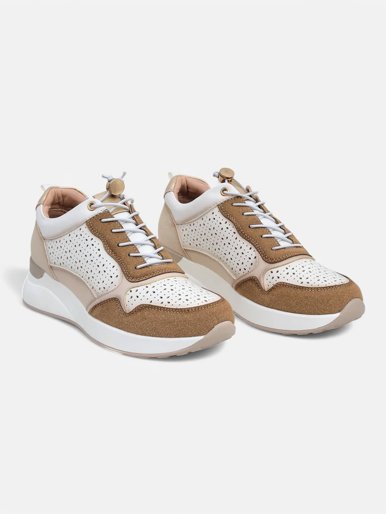- Trendy women's wedge sneakers made of eco leather and eco suede. Inside features a soft, eco leather insole. Laced footwear. They will be a great decoration for everyday outfits.
