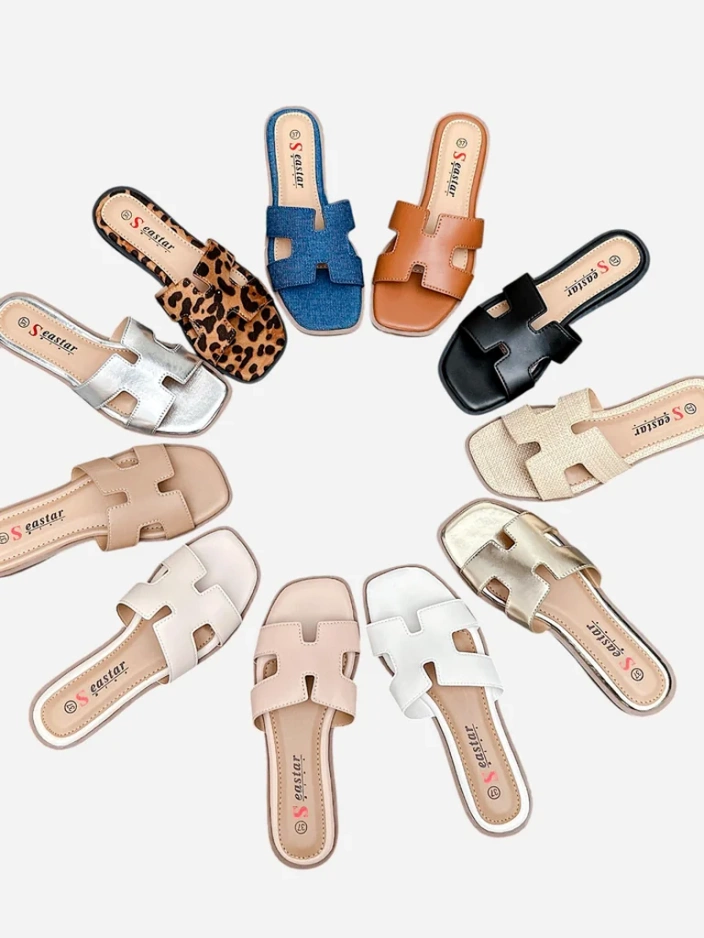 - Casualowe damskie klapki na płaskiej podeszwie. Wykonane w całości z ekologicznej skóry. Idealny wybór na wakacje!
