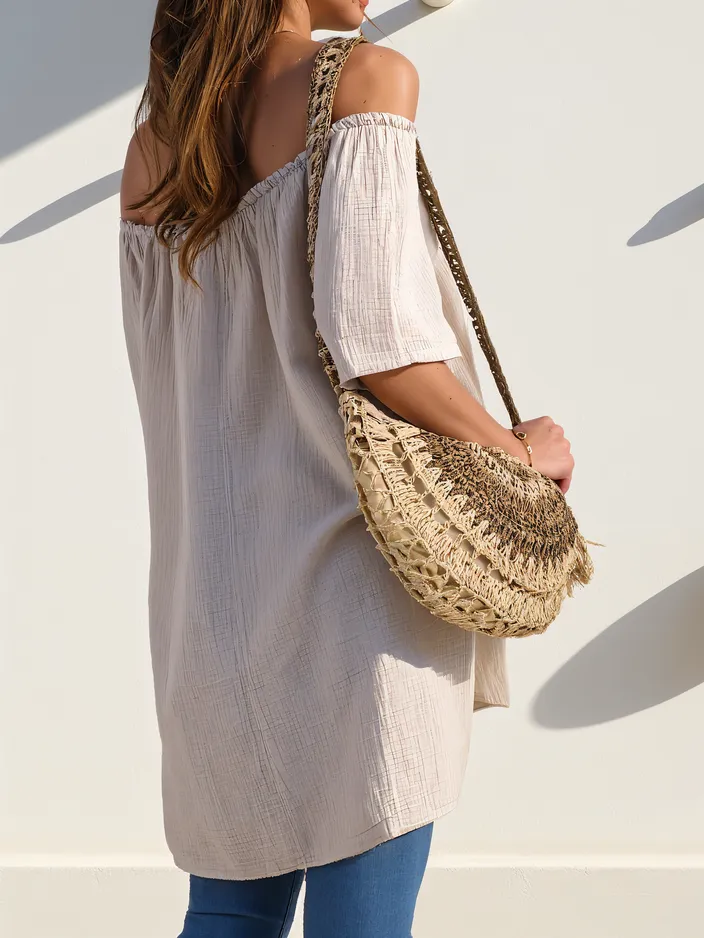 - Elegant women's cotton blouse a'la Spanish style with subtle decorative buttons. Perfect for warm days, it combines comfort with a feminine, romantic style.