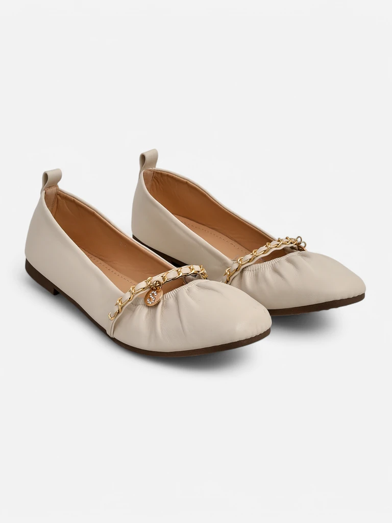 Women's Aelia beige eco-leather ballet flats with a decorative chain ITALIA
