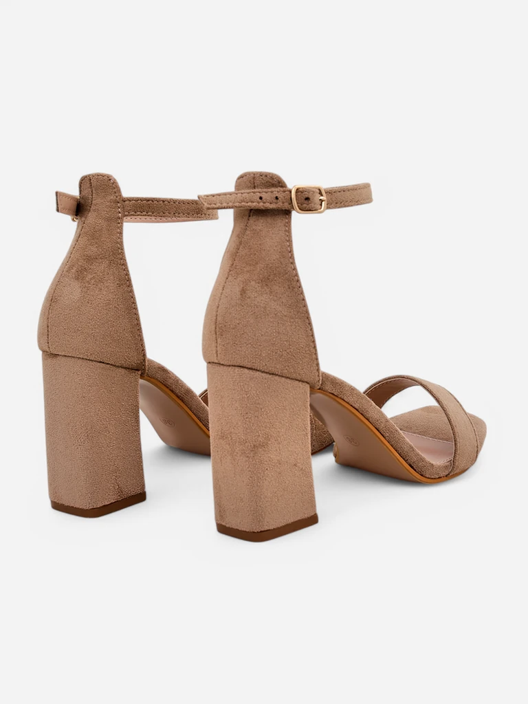 - Women's heeled sandals - the perfect idea for hot summer days. The model is made of eco suede and has an eco leather insole. The footwear is fastened with a buckle and has a square toe. A combination of style and comfort!
