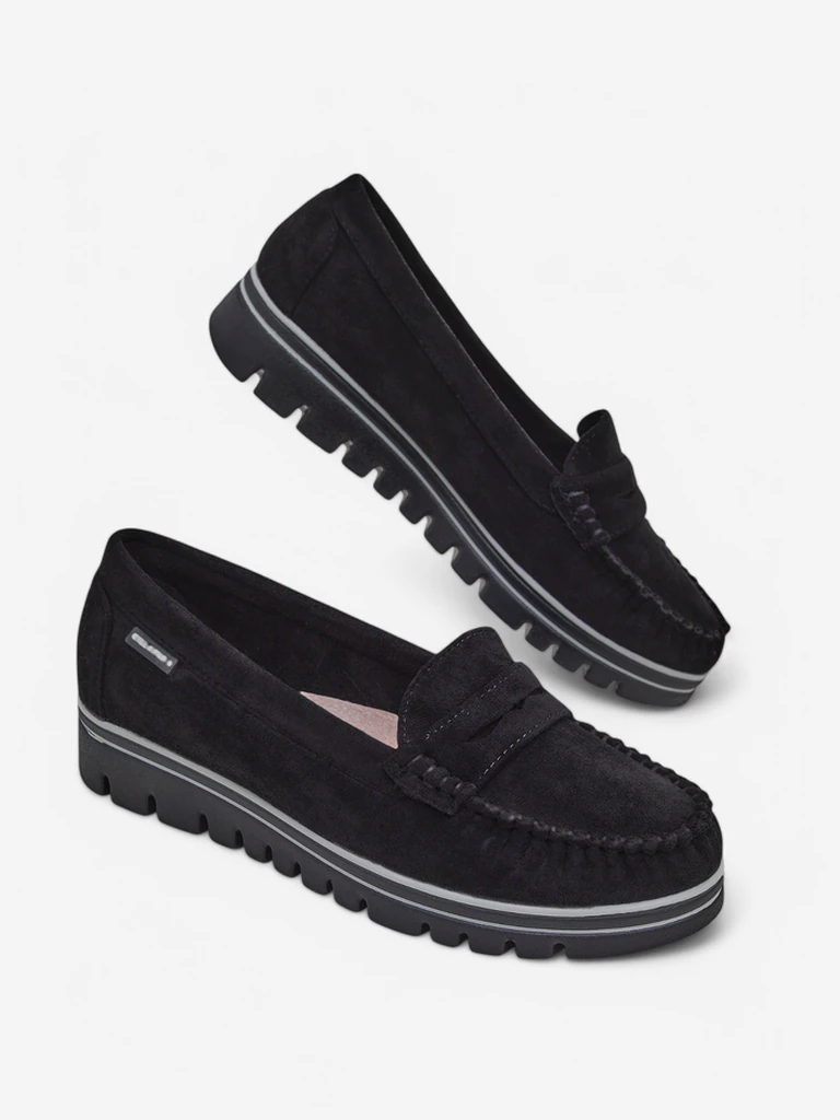 Discover the new black Sabella moccasins, which combine elegance with exceptional comfort. Made of high-quality ecological suede leather, these shoes not only look stylish but also care for the environment. The natural leather insole provides excellent ventilation and softness, making them a pleasure to wear all day long. Thanks to the flat heel with a height of 3.5 cm, these moccasins are ideal for both work and casual meetings with friends.