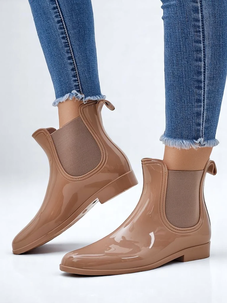 • Classic women's wellies made of rubber material with a lacquered finish. The insole is made of fabric material. Perfect footwear for autumn rainy days!