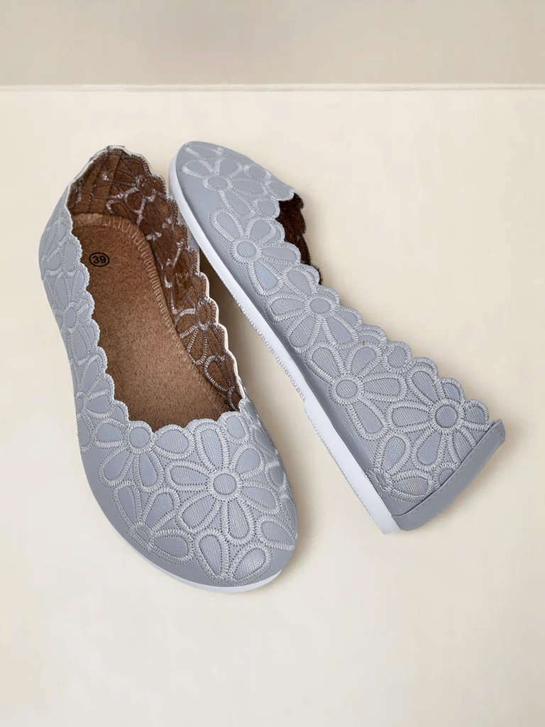 • Exceptional ballerinas made from fabric with a round toe. The upper is adorned with delicate floral embroidery. The soft fabric insole provides comfort. They’re perfect for elegant and fashionable outfits!