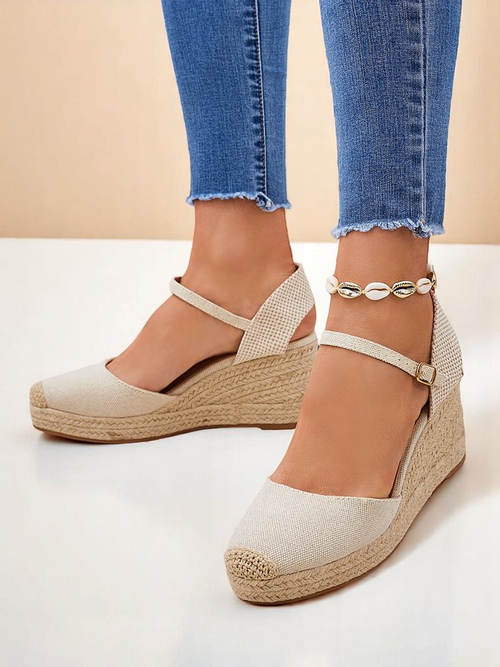 Callista women's sandals from Royalfashion are designed for women who value not only comfort but also style and the latest trends. The upper is made of high-quality eco-friendly suede leather – a material that imitates natural suede while being environmentally friendly and easy to care for. The soft, breathable fabric insole ensures your foot's comfort even on the warmest days of the spring and summer season. The 8.5 cm high wedge heel provides a slender silhouette and emphasizes femininity while offering stability and no foot strain – an ideal choice for walks, shopping, or meeting friends. The almond-shaped toe adds class and lightness, and the practical buckle closure keeps the sandals securely on your foot all day long. - High comfort even when worn all day thanks to the soft insole and the appropriate wedge profile. - The versatile beige color matches a variety of styles. - Eco-friendly suede leather does not require special cleaning agents, and any dirt can be easily removed with a slightly damp cloth. 1. For everyday wear, combine Callista sandals with fashionable, fitted skinny jeans and an oversized shirt or t-shirt for an urban, casual look. 2. For a date, choose a light midi dress in pastel colors – the wedges will visually lengthen your legs and add charm. 3. For a summer party, style them with high-waisted shorts or a skirt and a boho-style blazer. To maintain the attractiveness of the material, regularly remove dust with a synthetic suede brush. Keep the sandals in a well-ventilated place, away from direct sunlight. Avoid contact with water – if they get wet, leave them to dry at room temperature. Wedge shoes, especially in natural shades of beige and eco-friendly suede leather, are an absolute hit this season. Such shoes perfectly fit into both casual and romantic styles, combining comfort with feminine elegance. By choosing the Callista model, you emphasize your individual style while staying in line with the latest trends.