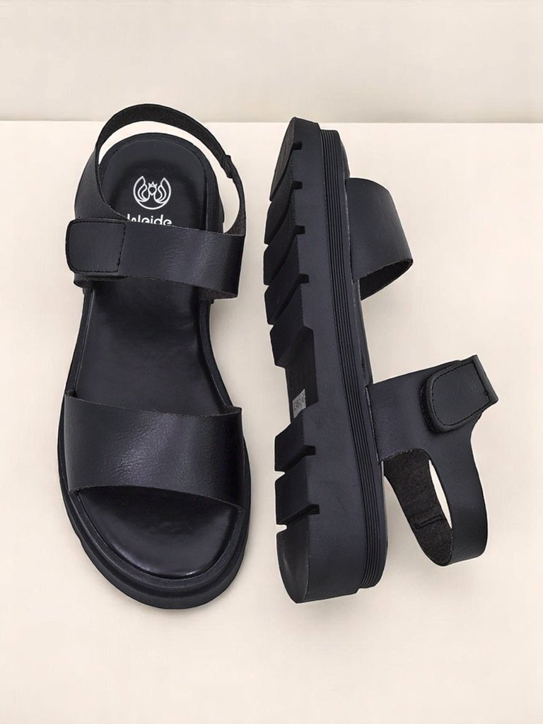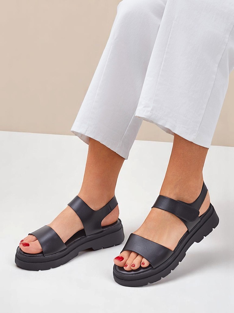 - Women's flat sandals - perfect for hot summer days. Features straps made of comfortable eco-leather and Velcro closure. Ideal for everyday wear!