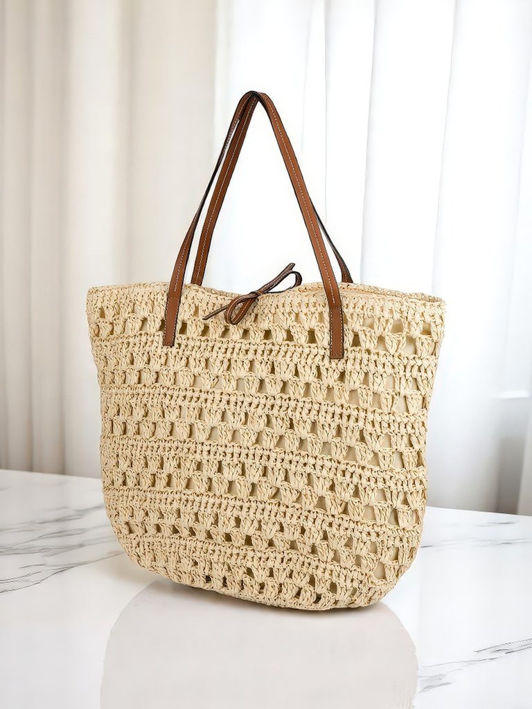 • Large straw tote bag for women. Features one compartment, an interior pocket, and zip closure. Lightweight, roomy, and stylish – ideal for summer, the beach, or everyday use!