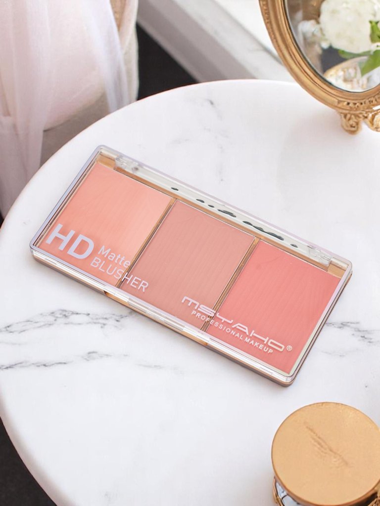 - The pressed blush palette with 3 shades allows for a perfect match to any type of beauty. The soft formula applies easily, adding freshness and a natural glow to the complexion.