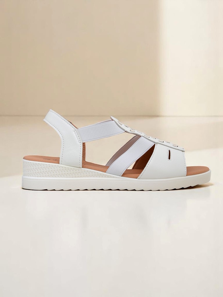 Sandalia Bianca are modern, white women's sandals that combine classic elegance with Italian lightness and functionality. They are made of high-quality ecological leather, resistant to abrasion and easy to clean. The inside is lined with soft, breathable synthetic padding that ensures comfort during all-day wear. Elastic straps are used in stretch technology, allowing for a perfect fit to the shape of the foot without pressure, and the sole is made of wear-resistant EVA foam, known for its lightness and flexibility. A unique feature of these sandals is the innovative design with cutouts and geometric applications on the front, inspired by the Mediterranean style. Perforations guarantee air circulation, keeping feet fresh even on the hottest days. Sandalia Bianca are particularly popular among women who appreciate comfort and a versatile style. They are perfect for casual city looks - with a breezy linen dress or shorts and a top. They are also an ideal choice for office work when paired with light chinos and an elegant blouse. In the evening, you can combine the sandals with a long maxi skirt and expressive jewelry - a great solution for a romantic dinner or a summer walk. To maintain the freshness and whiteness of the sandals, it is recommended to regularly wipe them with a soft, damp cloth and avoid contact with excess water. Do not dry them in the sun or near direct heat sources - this will preserve the elasticity of the material. By storing the sandals flat, you avoid deformation of the sole. Currently, white and geometry reign in fashion - minimalist yet effective patterns are appreciated by fans of smart casual style and urban freedom. Sandalia Bianca sandals perfectly fit this trend - they are timeless, lightweight and allow you to create many styles for everyday and special occasions.