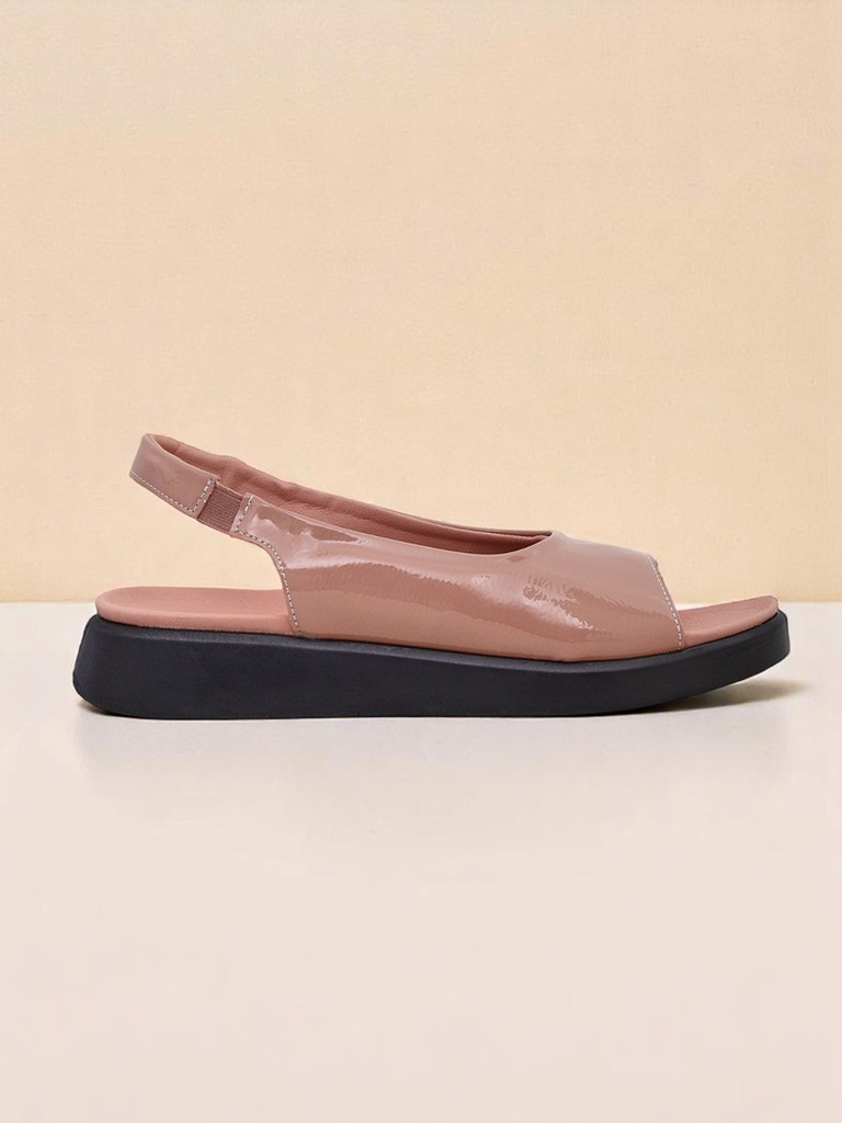 Serenella are unique women's platform sandals that perfectly fit into current fashion trends. Made of high-quality lacquered ecological leather, they are distinguished by a subtle shine in an elegant, subdued pink shade. Thanks to the use of modern lamination technology, the material retains its softness, ensuring foot comfort throughout the day. The ecological leather used for production has the OEKO-TEX certificate, which confirms its safety and skin-friendliness. The soft microfiber inner lining and the elastic heel strap ensure a perfect fit and no abrasions, even during longer walks. The sole, made of light, shock-absorbing EVA - a material resistant to abrasion and flexible - takes care of the comfort of the feet and the stability of the step. Serenella sandals can be easily matched to many styles: 1. Casual style - combine them with a light linen dress or midi skirt to create a comfortable summer look for a walk or shopping. 2. Work style - pair with elegant cigarette trousers and a white shirt for a semi-formal set ideal for warm days. 3. Event style - they also work perfectly with a monochrome jumpsuit or fitted jeans and a fashionable shopper bag for a meeting with friends or a visit to a cafe. To keep Serenella sandals in perfect condition, we recommend wiping them with a damp cloth and using dedicated ecological leather care products - avoid contact with chemical substances. Store in a dry, airy place, protecting from direct sunlight. Currently, sandals on a higher, contrasting sole and in pastel colors reign on the catwalks and in streetwear styles. Serenella responds to these needs, combining comfort with minimalist elegance and a touch of modernity. An ideal choice for women who value style, comfort and versatility.