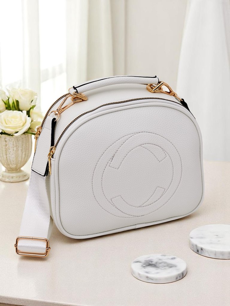 - Small handbag made of eco leather with elegant embossing. It has 2 compartments, 3 pockets, and a detachable, adjustable strap. Stylish and practical – ideal for everyday use and outings.
