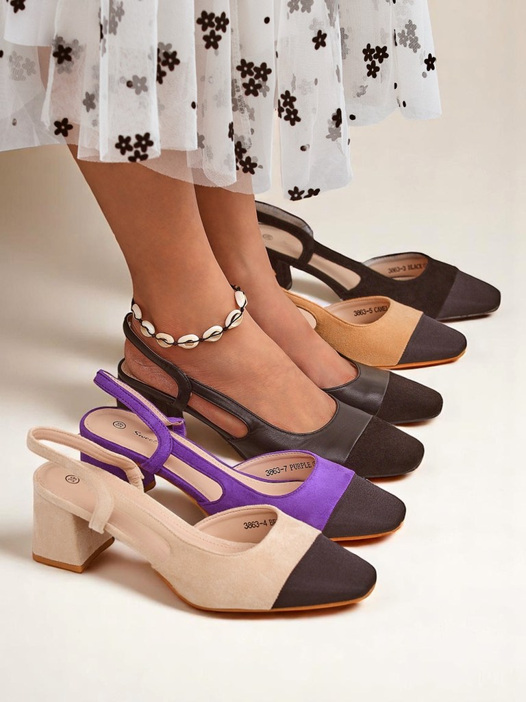 Bellona Nero are sophisticated women's pumps inspired by classic Italian style and the elegance of ancient muses. They are made of high-quality ecological leather, which perfectly imitates natural leather, while being environmentally friendly and easy to care for. The front of the shoe is decorated with a contrasting panel of matte synthetic suede, adding chic and a unique character to the whole. The stable, medium heel with a wide base ensures comfort even when worn all day, and the soft memory foam insole supports the foot and minimizes fatigue. The most important advantages of the Bellona Nero model are its timeless look, which perfectly fits into current minimalist trends and the return to classic and geometric shoe designs. Open heels and a heel strap provide breathability, making these shoes a great choice for warmer seasons. Styling tips: 1. Business look: Combine Bellona Nero with cigarette trousers, a white shirt and a jacket - you will get a professional outfit for the office, emphasizing your self-confidence. 2. Evening styling: Choose an elegant midi or maxi dress in classic colors to create a chic outfit for an important outing or celebration. 3. Casual chic: Pair them with mom-fit jeans, a loose top and a classic trench coat for a fashionable, comfortable everyday look. Cleaning and care: Clean the upper with a damp, soft cloth. It is best to refresh the suede part with a special suede brush or with a dry sponge. Avoid soaking the shoes and store them in a ventilated place away from direct sunlight. To better maintain the shape, put paper inside or use a shoe form. Currently, wide, stable heels and combinations of various textures on one shoe model are fashionable - Bellona Nero perfectly fits into this trend, while being a universal addition to many styles. Choose this model if you value comfort, fashionable appearance and timeless elegance!
