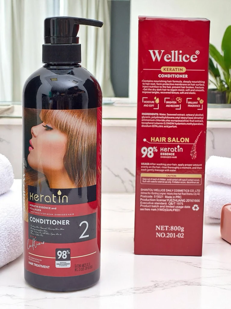- The keratin hair conditioner intensively regenerates, smooths, and strengthens the hair, restoring its healthy appearance and natural shine. It makes combing easier, reduces frizz, and protects against damage. Ideal for weakened and damaged hair.