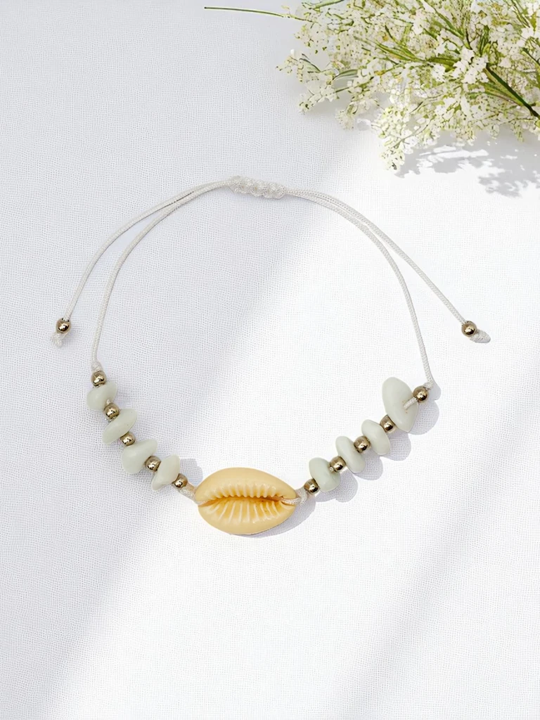 - Adjustable string bracelet decorated with a natural seashell. Delicate and full of seaside charm, perfect for summer days. It brings a beach vibe to any outfit, adding a subtle, holiday accent. Perfect for warm days by the sea!