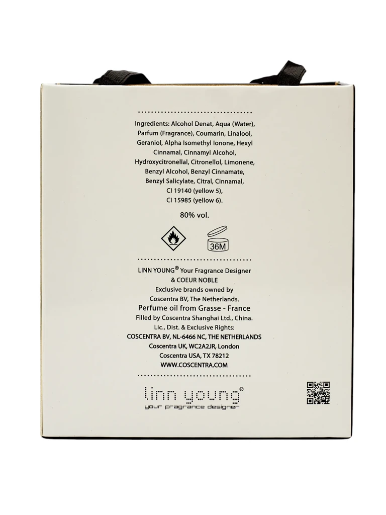 • An elegant fragrance opens with fresh aldehydes, bergamot, lemon, and neroli, blossoming into a floral heart of rose, lily, and jasmine. A warm base of vanilla, vetiver, amber, and sandalwood gives the composition depth and longevity.