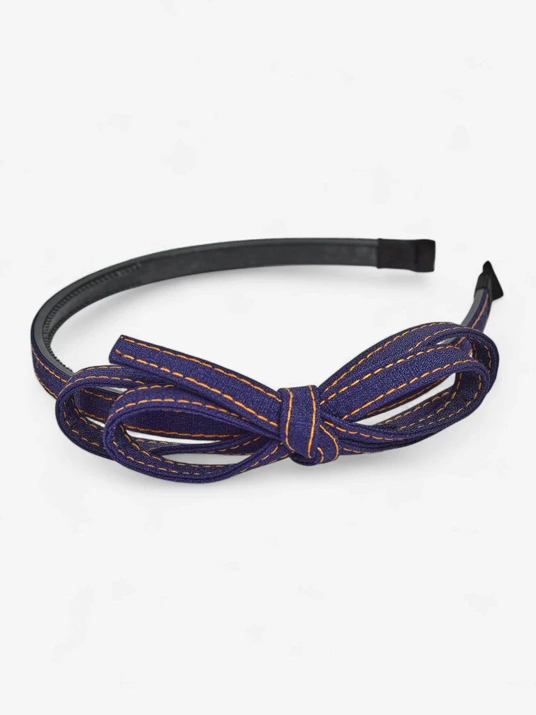 - Denim hairband with bow – a fashionable accessory for everyday and casual outfits.
