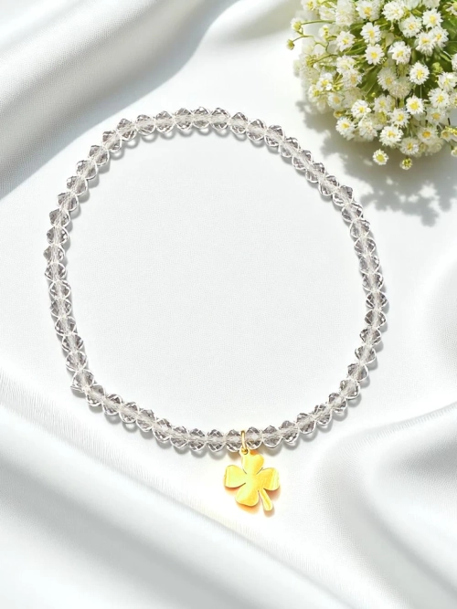 - Bracelet with beads and a clover charm is a stylish lucky talisman. Delicate and elegant, it symbolizes prosperity, hope, and positive energy. Perfect for everyday wear as a subtle accessory with a unique message.