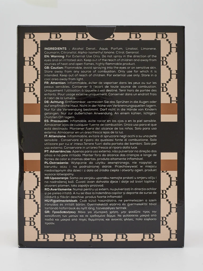• Cinnamon, cardamom, and grapefruit introduce the fragrance with an energetic and spicy accord. The heart of amber and clove adds warmth. The base of leather, patchouli, vanilla, and sandalwood provides depth and longevity.
