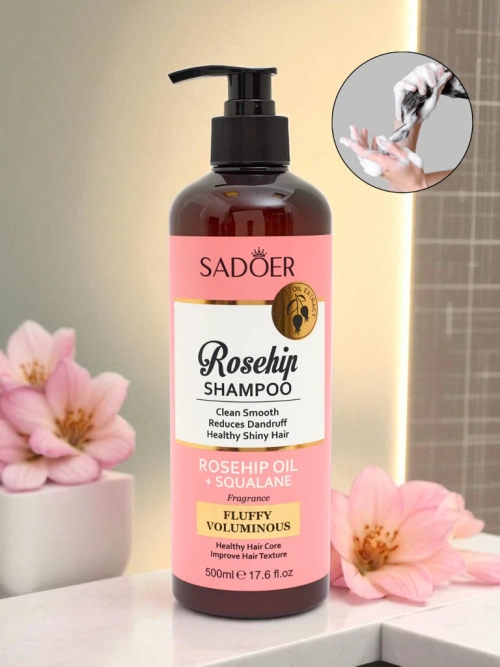 - Shampoo with wild rose oil and squalane – moisturizes, adds volume, reduces dandruff.