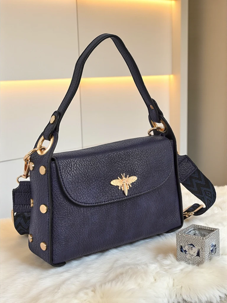 Melia Cielo Women's Handbag – Navy Blue Eco Leather with Bee Motif