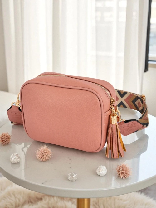 - Stylish small eco-leather handbag with a colorful strap and a charming tassel. 1 compartment, 2 pockets, adjustable and detachable strap. Perfect for everyday use and going out – compact, yet it can hold everything important.
