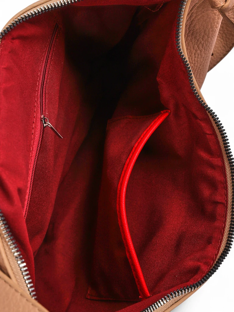 - Large, semi-circular shopper bag made of eco-leather, with 1 compartment and 2 pockets. Adjustable strap for comfort. Stylish and spacious – ideal for shopping, university, or everyday tasks.