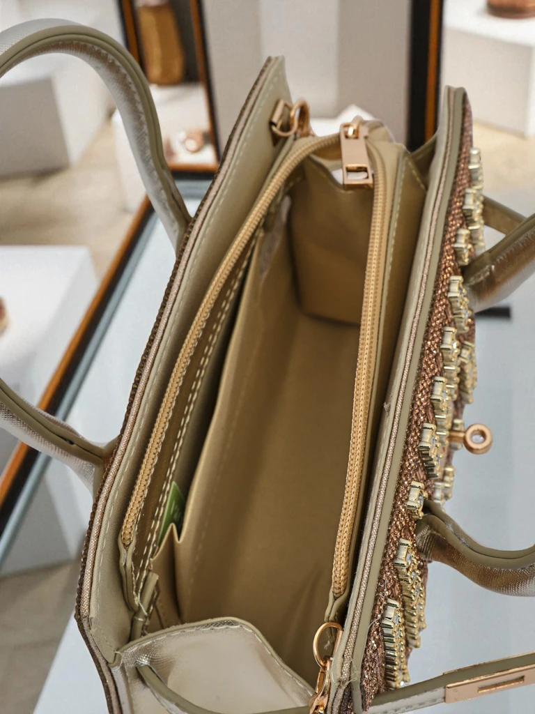 - Elegant envelope clutch with shimmering cubic zirconia, 1 compartment, zip closure. Stylish handles and a decorative chain add chic. Perfect for special occasions - dazzle with class!