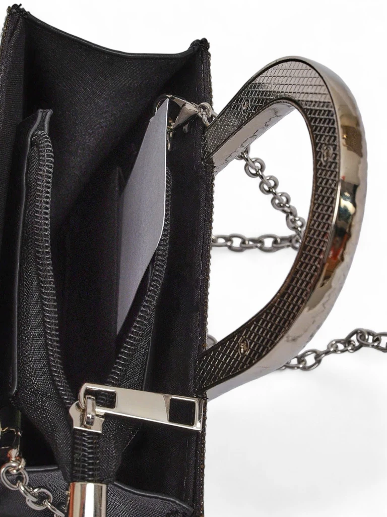 - Elegant envelope clutch with shimmering cubic zirconia, 1 compartment, zip closure. Stylish handles and a decorative chain add chic. Perfect for special occasions - dazzle with class!