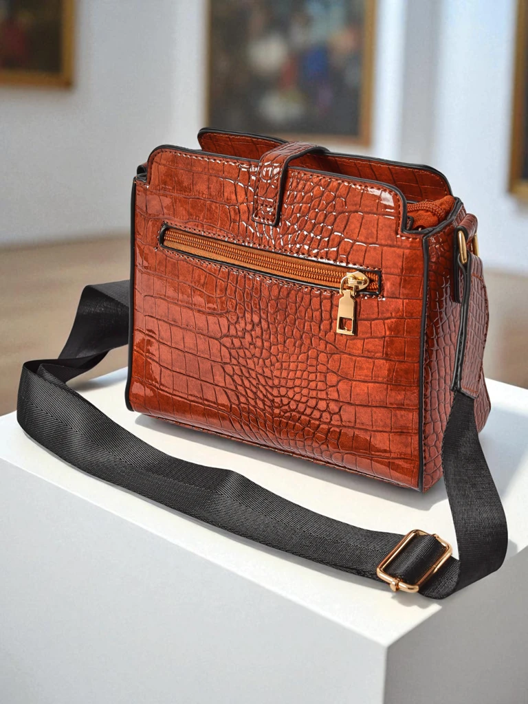 - Patent faux leather handbag with elegant embossing. 1 spacious compartment and a detachable, adjustable strap ensure comfortable carrying. A stylish choice for everyday and special occasions. Class that attracts attention.