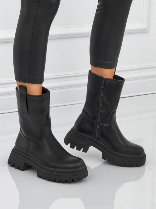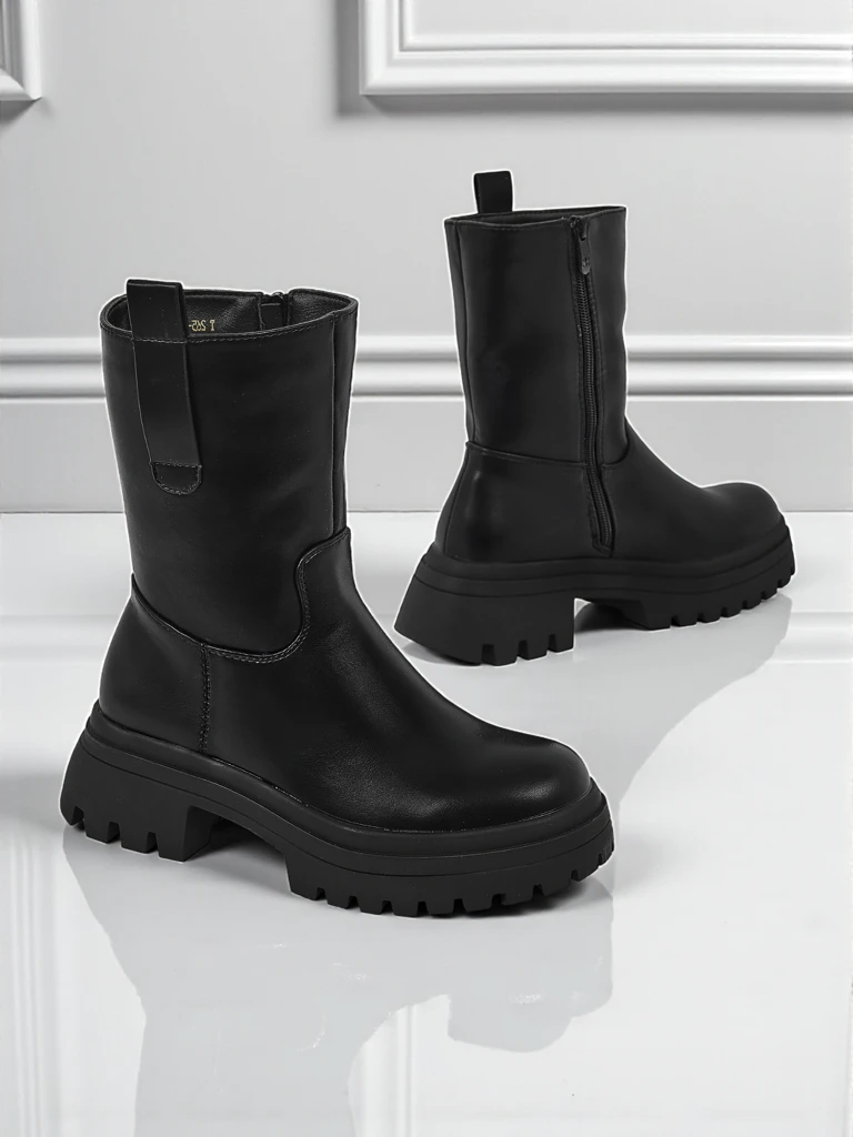 • Eco-leather women's ankle boots with a zipper closure. Model with a thicker sole. Comfortable and stylish, perfect for autumn!
