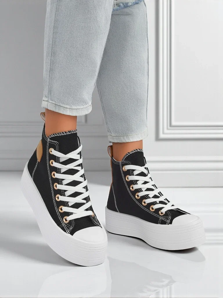 - Fashionable fabric sneakers with a thicker sole. Comfortable, lightweight, and stylish – perfect for urban outfits and everyday wear. Comfort and trend in one step.