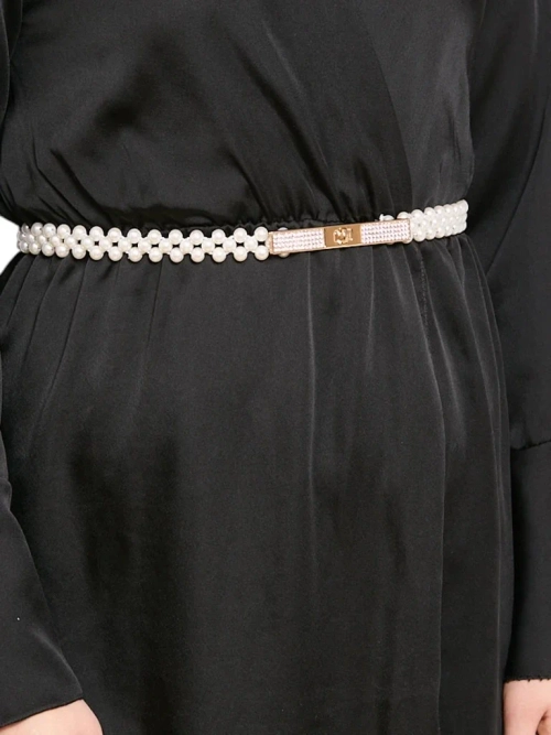 - Women's pearl belt on elastic band - a universal and comfortable accessory for everyday styling. Ideal for jeans, trousers or dresses. Style and functionality in one!