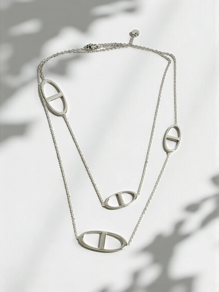 Silver Athenia Dualis Necklace – Minimalist Chain with Medallions